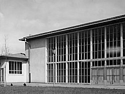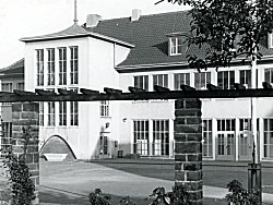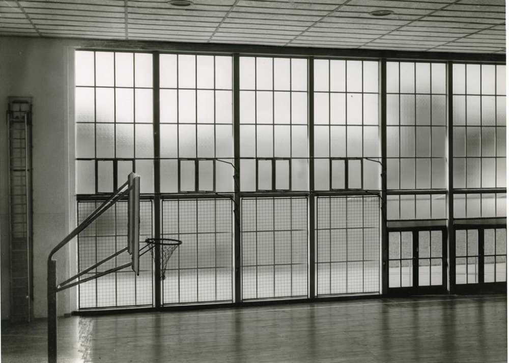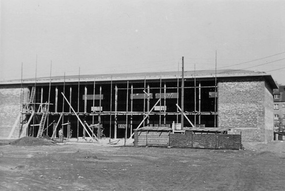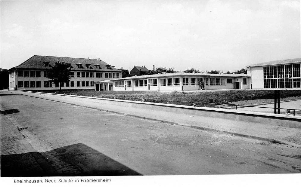 | Für alle Schulen und Sportvereine von Friemersheim stand eine der größten und besteingerichteten Turnhalle zur Verfügung. Sie bestand aus einem Stahlskelettbau und ihre Ausmaße betrugen 34 x 14 m. Sie gehörte zu den modernsten Hallen von Westdeutschland. | |