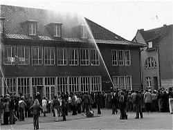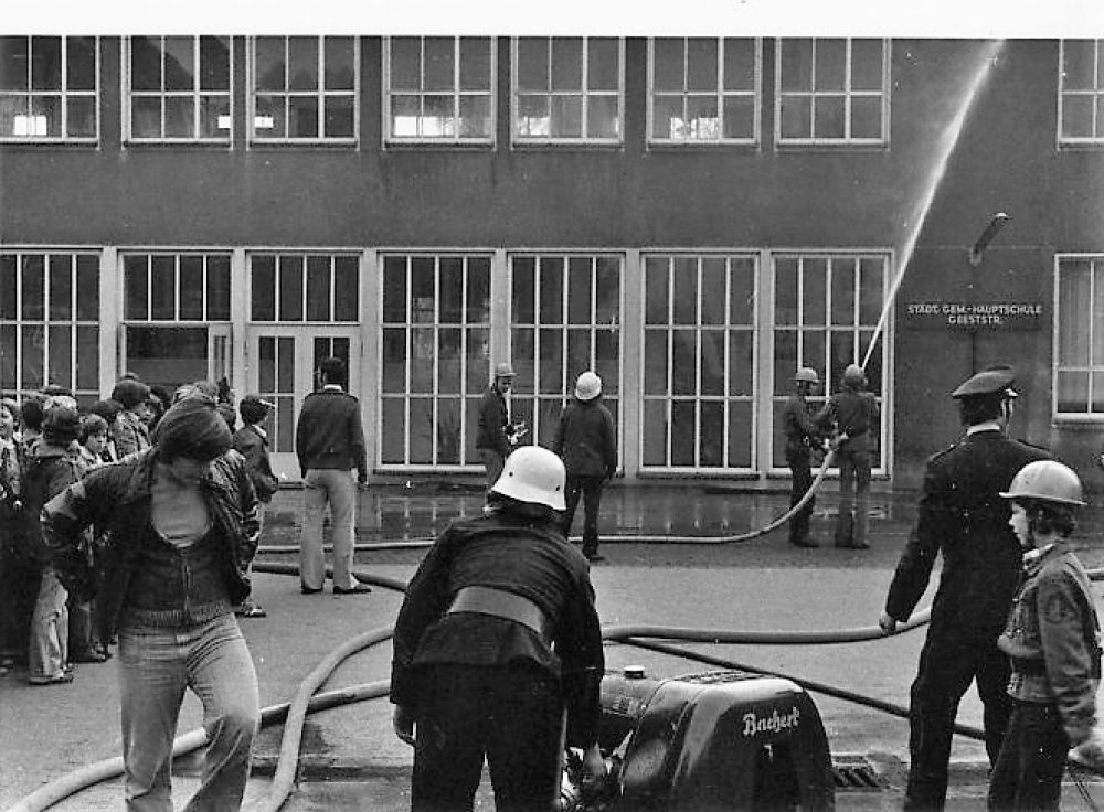 | 1945 | Nach dem Krieg beschlossen Stadtrat und Verwaltung, an der gleichen Stelle ein neues Schulhaus zu errichten. Dazu mußte das Wohnhaus auf dem Grundstück von Kempkens an der Geeststraße sowie ein Teil des Gärtnereigeländes von Lohmann an der Kaiserstr. erworben werden. |