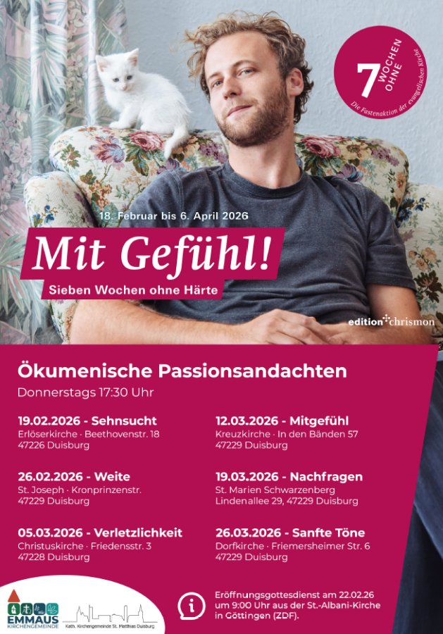 Ort: Pfarrheim St. Joseph, Kronprinzenstr. 32a, 47229 Duisburg