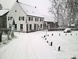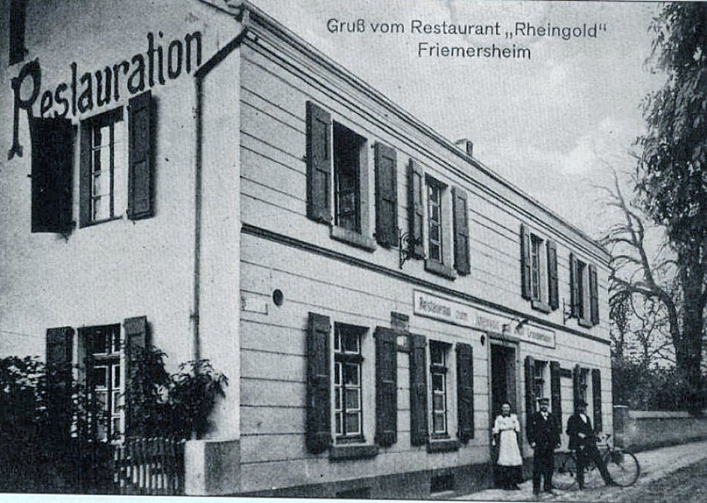 liegt die ehemalige Dorfschenke. Stattliche alte Bauerngehöfte, wertvoller Baumbestand und die nahegelegene, naturgeschützte Rheinaue mit kilometerlangen, gepflegten Rad- und Wanderwegen machen Friemersheim