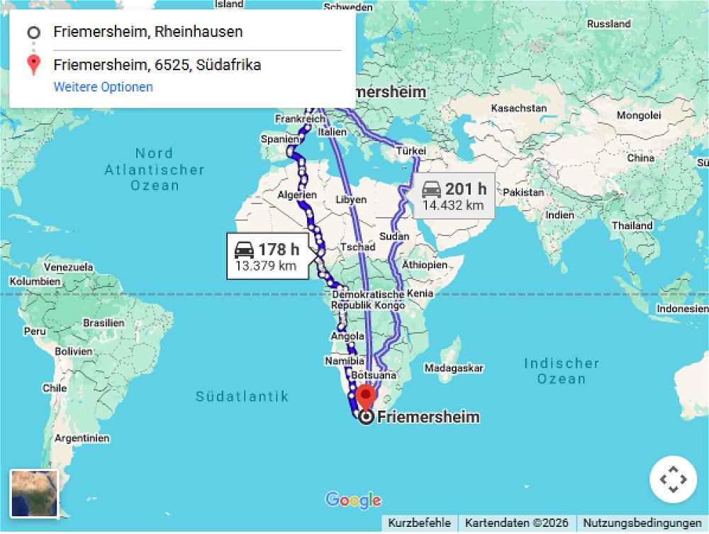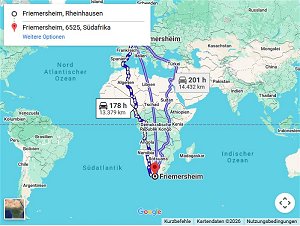 Wenn alles gut gehen würde, wäre man in 192 Stunden dort (mit Fahrerwechsel, versteht sich).