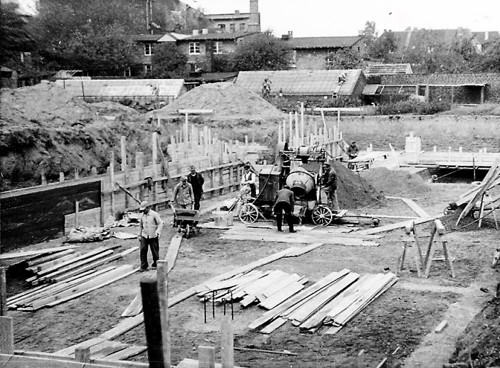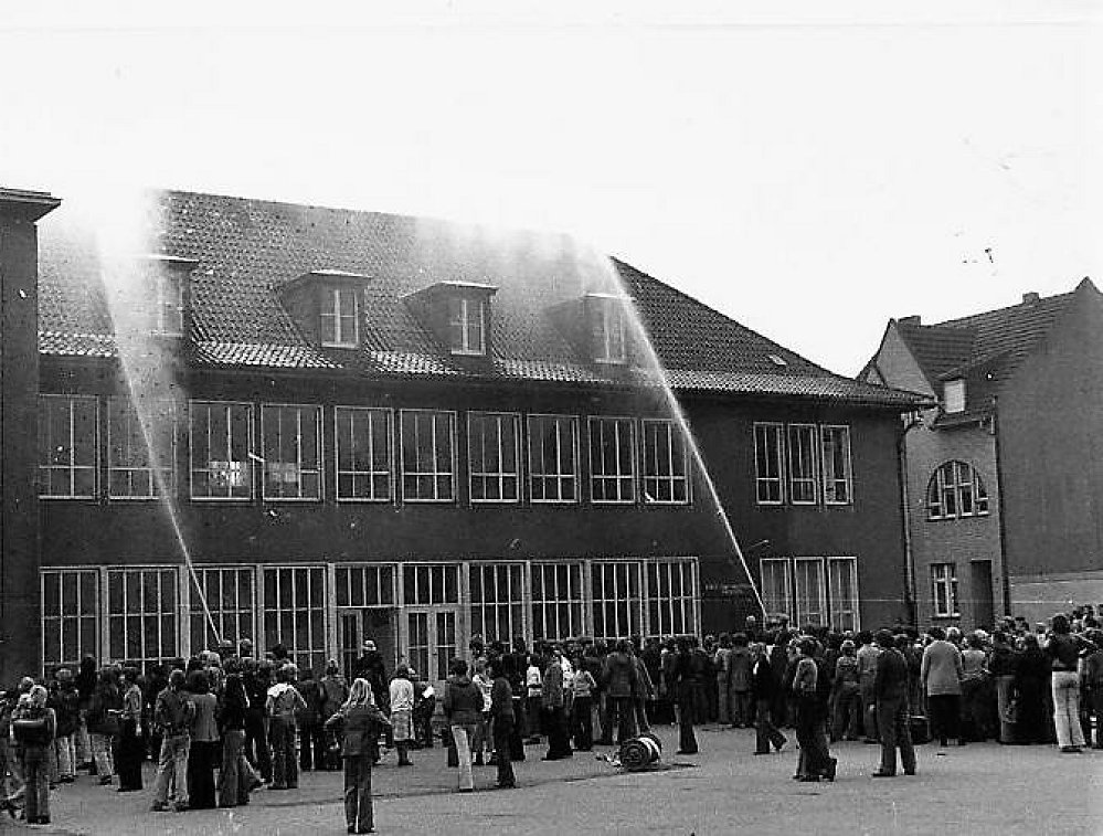 | 1945 | Nach dem Krieg beschlossen Stadtrat und Verwaltung, an der gleichen Stelle ein neues Schulhaus zu errichten. Dazu mußte das Wohnhaus auf dem Grundstück von Kempkens an der Geeststraße sowie ein Teil des Gärtnereigeländes von Lohmann an der Kaiserstr. erworben werden. |